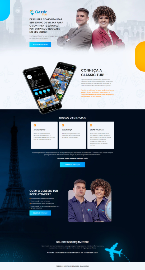 Verificamos desempenho, responsividade, integração com WhatsApp, formulário e ferramentas de marketing.